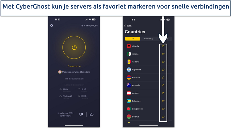- Roemeense thuisbasis en NoSpy-servers. Het hoofdkantoor van CyberGhost valt buiten het rechtsgebied van de 14 Eyes Allianties. De provider heeft hier ook een aantal privéservers (NoSpy), die uitsluitend worden beheerd door CyberGhost-medewerkers om het risico te minimaliseren dat je gegevens worden onderschept.