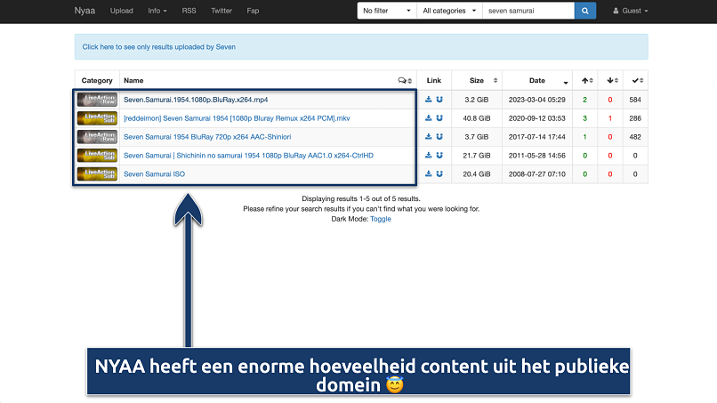 Opmerking: Je zou NYAA niet moeten gebruiken om illegale content te downloaden.