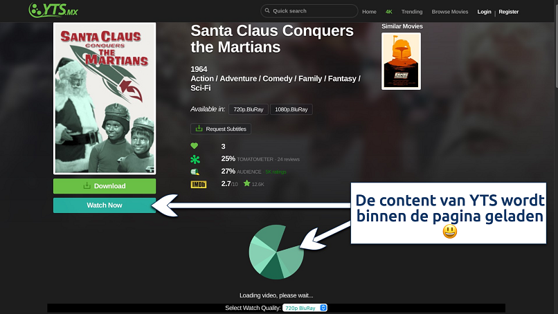 Opmerking: Je zou YTS niet moeten gebruiken om illegale content te downloaden.