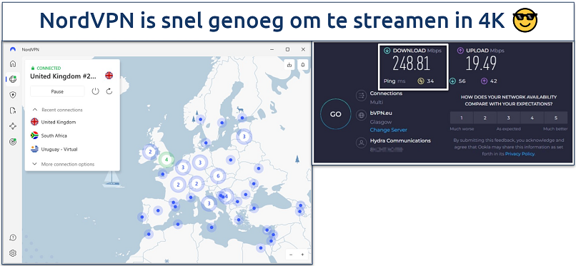 Snelheid | Slechts 2% snelheidsverlies op nabijgelegen servers, uitstekend voor ononderbroken streamen |