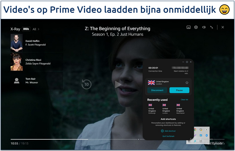 Surfshark biedt veilige toegang tot tal van streamingplatforms, zodat je nooit meer je favoriete content hoeft te missen. Tijdens onze tests werkte Surfshark betrouwbaar met Amazon Prime Video, BBC iPlayer en Netflix.